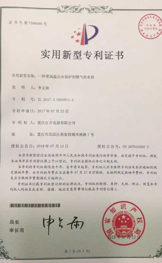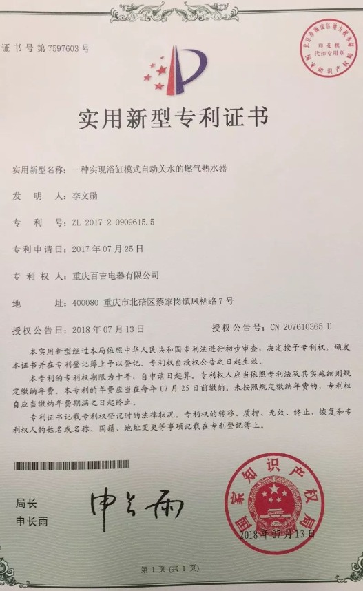 近日,百吉自主研發(fā)的多項(xiàng)技術(shù)通過了國(guó)家專利審查,喜獲授權(quán)!獲得專利的技術(shù)名稱分別是:一種高抗風(fēng)燃?xì)馊紵鳌⒁环N帶高溫出水保護(hù)的燃?xì)鉄崴鳌⒁环N浴缸淋浴雙模式的燃?xì)鉄崴饕约耙环N實(shí)現(xiàn)浴缸模式自動(dòng)關(guān)水的燃?xì)鉄崴鳌?/span>